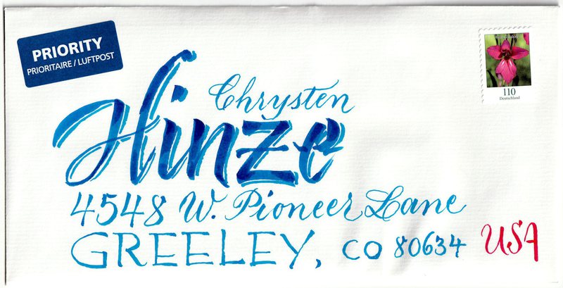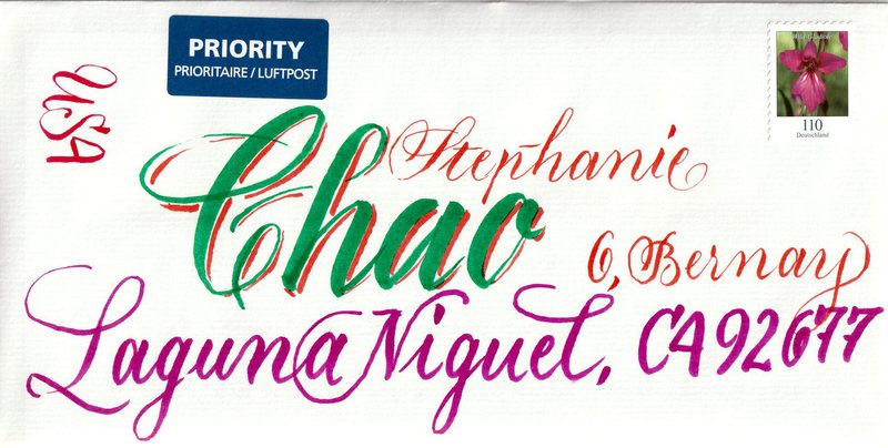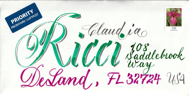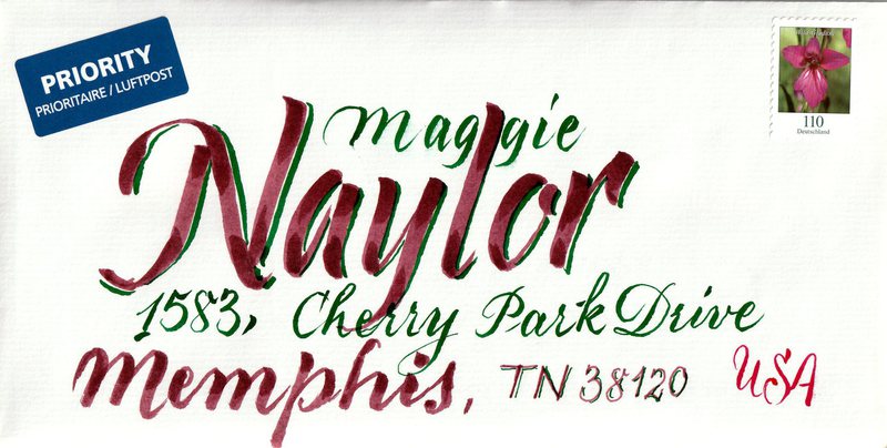 Envelope Exchange ist eine jährlich wiederkehrende Aktion von IAMPETH (International Association of Master Penmen and Teachers of Handwriting) in den USA, bei der unter den Teilnehmern Adressen ausgetauscht wurden, damit sie sich gegenseitig schöne Briefumschläge (natürlich mit Inhalt) zuschicken sollten.